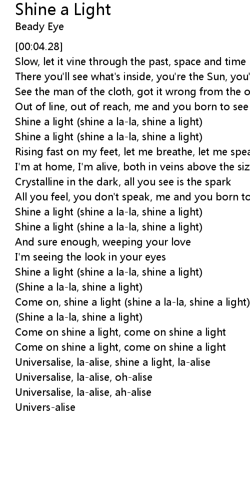 | [02:13.46] | Shine a light (shine a la-la, shine a light) |