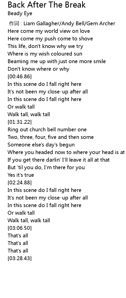 | [00:00.00] | zuò cí : Liam Gallagher Andy Bell Gem Archer |