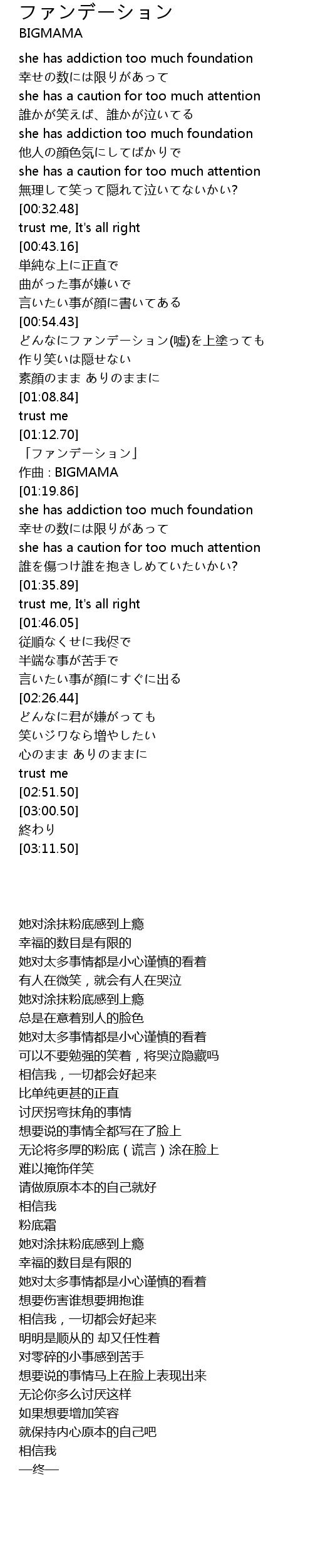 | [00:03.64] | 她对涂抹粉底感到上瘾 |