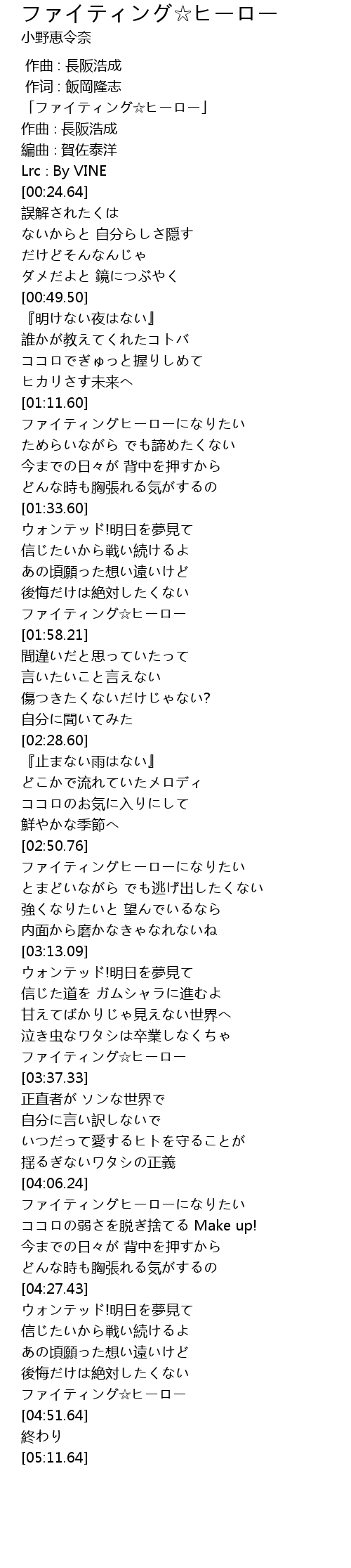 | [00:00.64] | 「ファイティング☆ヒーロー」 |