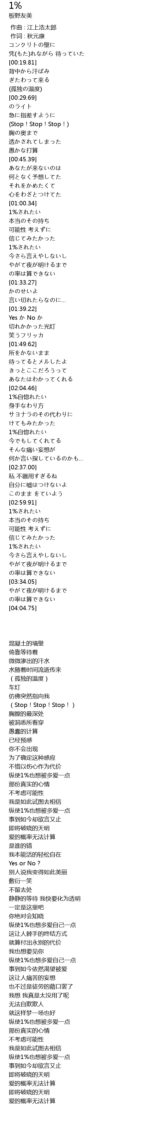 | [02:19.05] | 纵使1%也想多爱自己一点 |