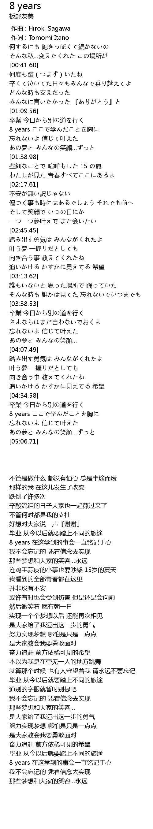 | [04:41.82] | 8 years ここで学んだことを胸に |