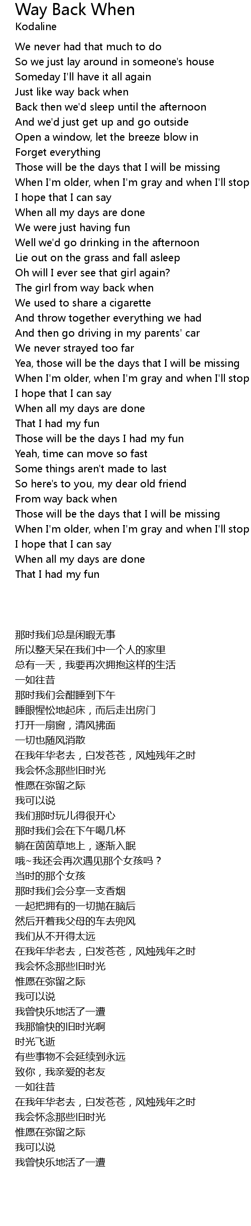 Just like way back when |