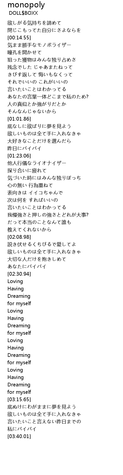 | [00:24.30] | 気まま勝手なモノポライザー |