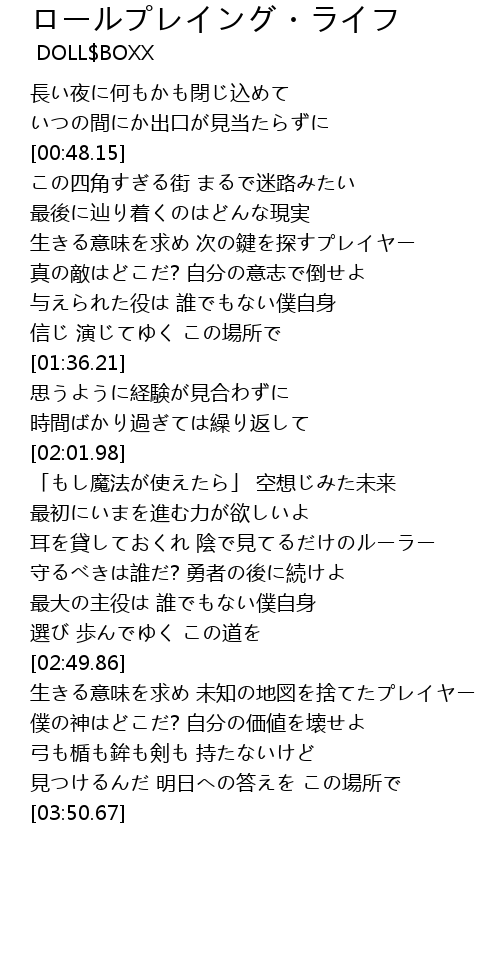 | [01:02.63] | 生きる意味を求め 次の鍵を探すプレイヤー |
