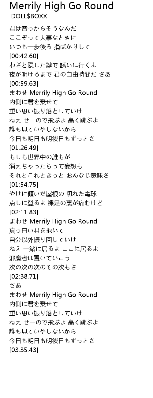 | [03:20.36] | ねえ せーので飛ぶよ 高く跳ぶよ |