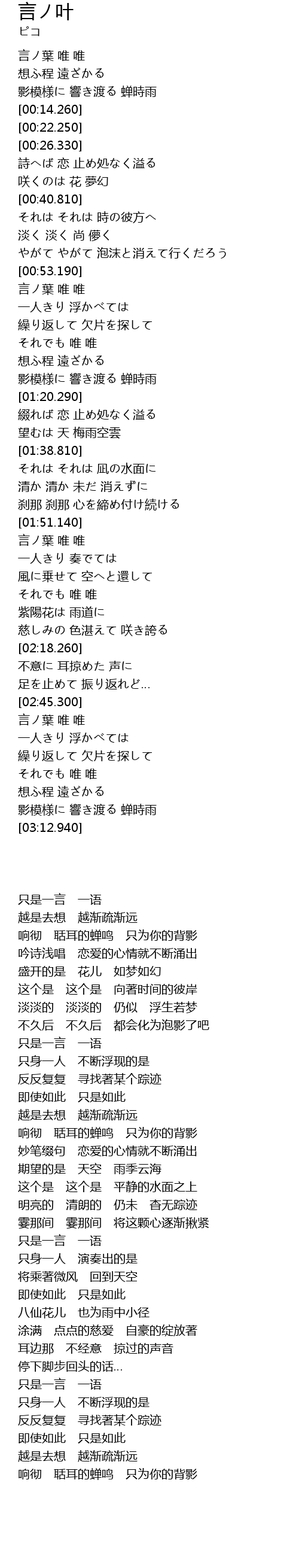 | [02:46.210] | 言ノ葉 唯 唯 |