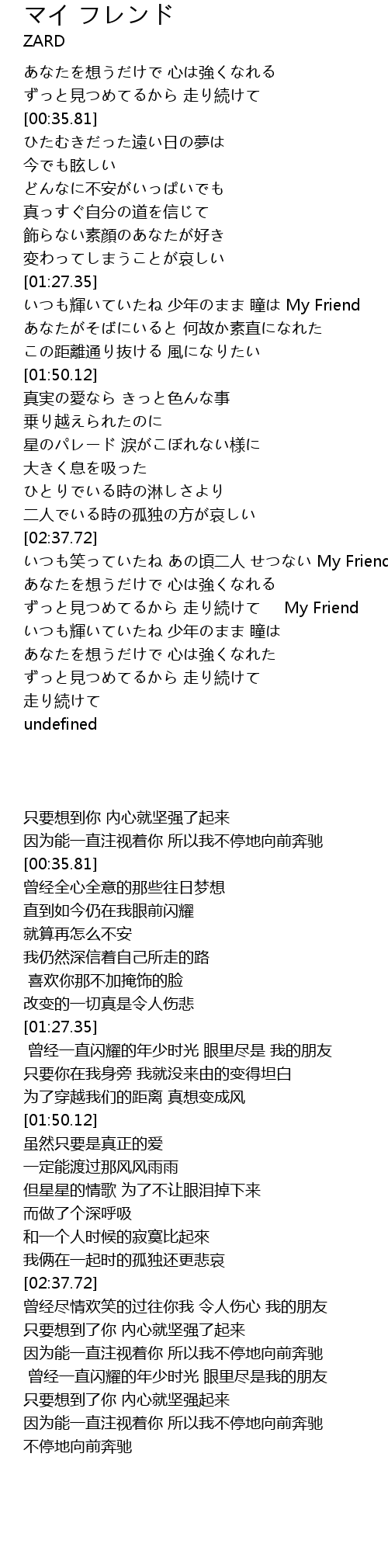 | [02:38.35] | 曾经尽情欢笑的过往你我 令人伤心 我的朋友 |