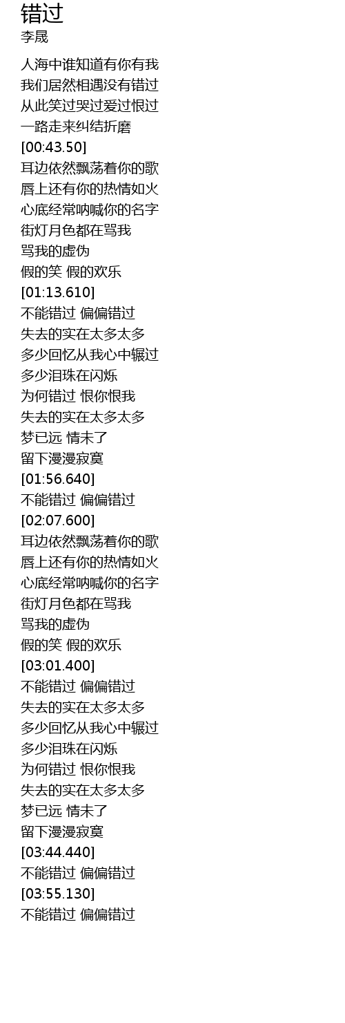 | [03:56.760] | 不能错过 偏偏错过 |