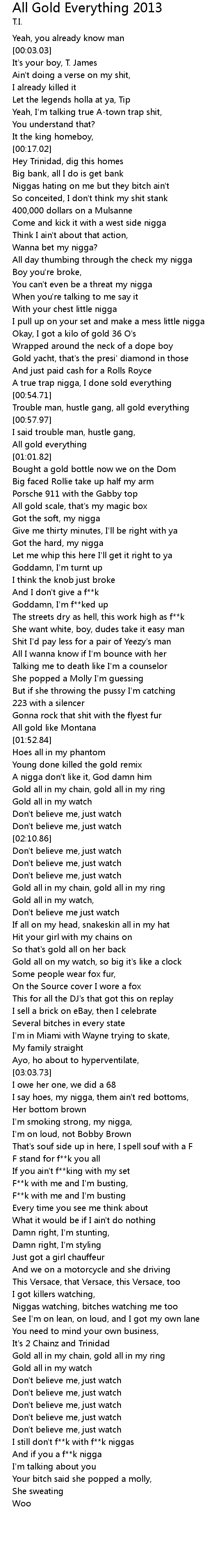 Gold all in my watch, |