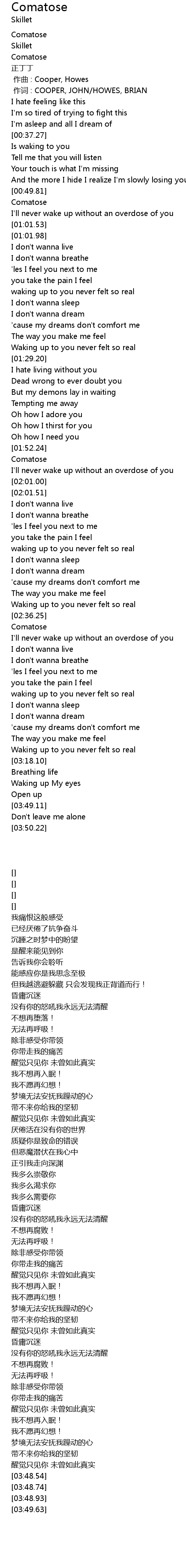 | [01:53.83] | Comatose |