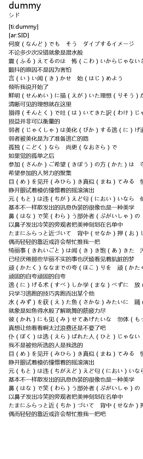 | [01:52.901] | 绮丽事(きれいごと)は闻(き)き饱(あ)きた 汚(けが)れた梦(ゆめ)は见饱(みあ)きた |