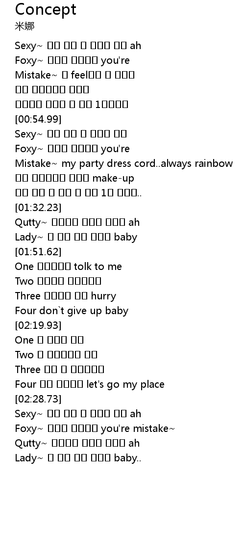 | [00:56.31] | Sexy~ 가장 쉬운 내 첫번째 컨셉 |