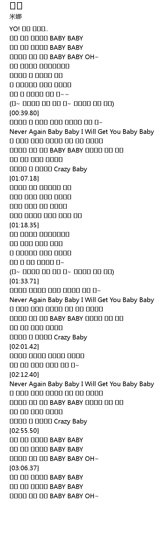 | [01:58.38] | 미치도록 널 만들거야 Crazy Baby |
