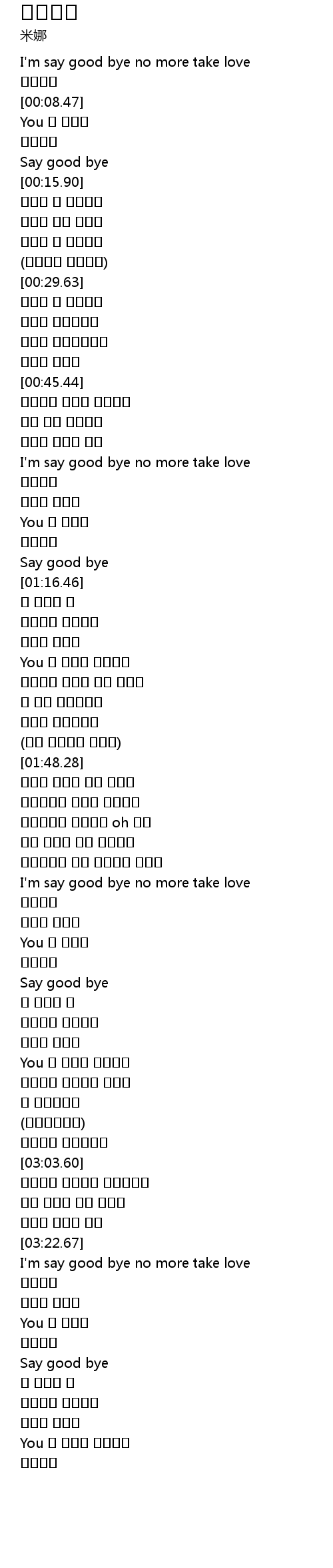 | [03:23.60] | I' m say good bye no more take love |