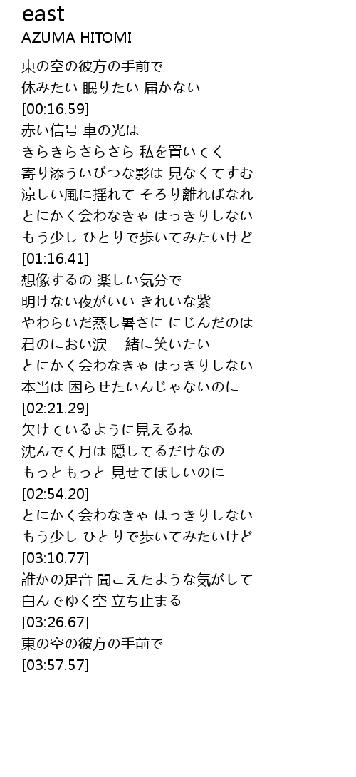 | [00:00.79] | 東の空の彼方の手前で |