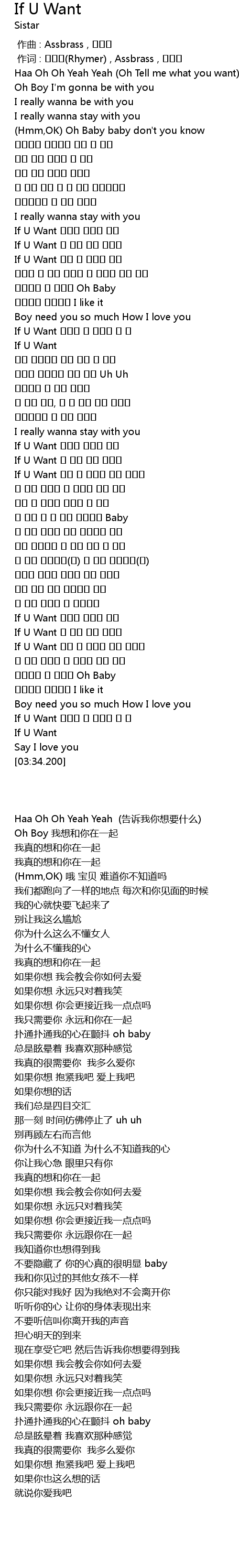 | [03:24.460] | If U Want 안아줘 날 이뻐해 줘 날 |