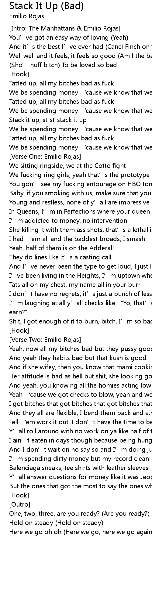 | Shit, I got enough of it to burn, bitch, I' m so bad | |