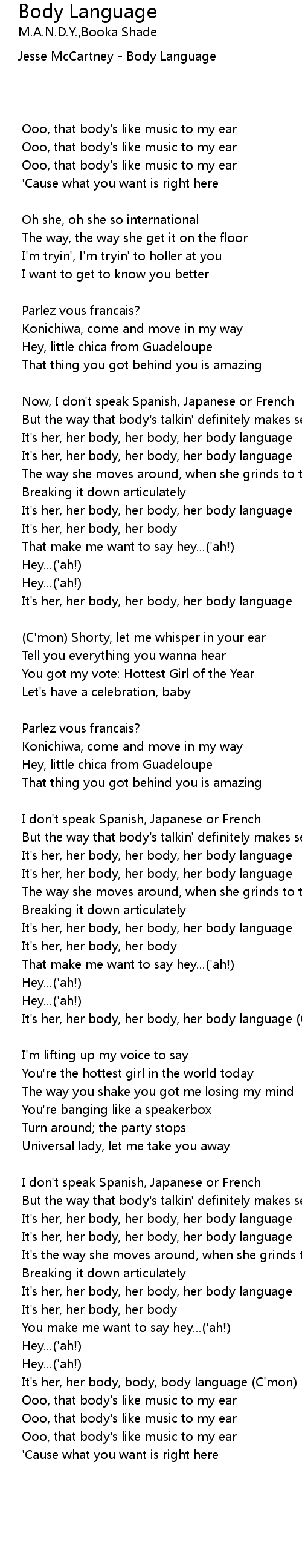 Body Language 歌词