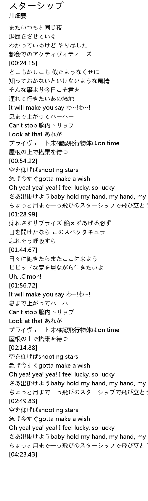 | [02:07.49] | プライヴェート未確認飛行物体はon time |