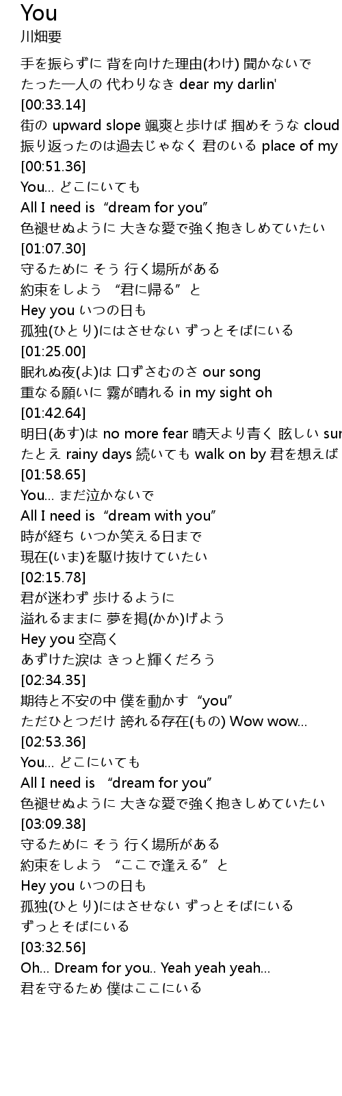 | [02:36.14] | 期待と不安の中 僕を動かす“you” |