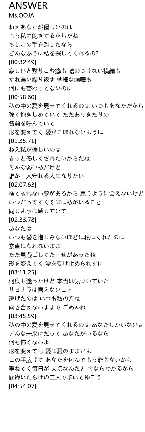 | [02:58.22] | 形を変えてく 愛を受け止められずに |