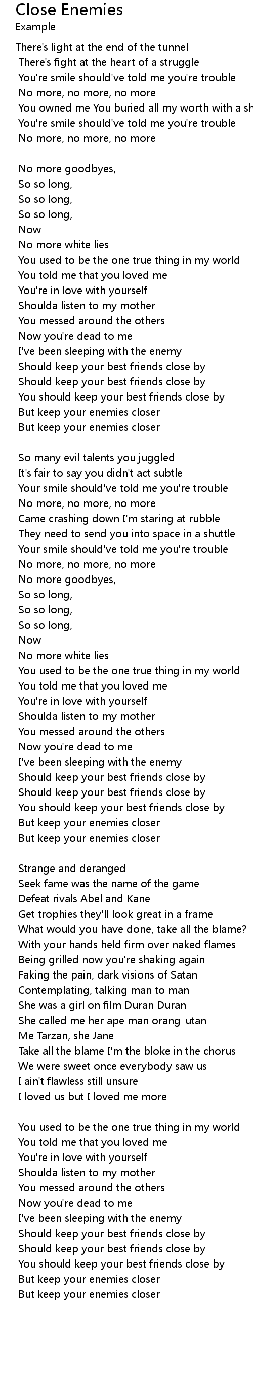 But keep your enemies closer |