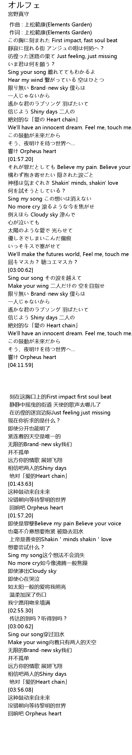| [00:00.00] | zuò qǔ : shàng sōng fàn kāng Elements Garden |