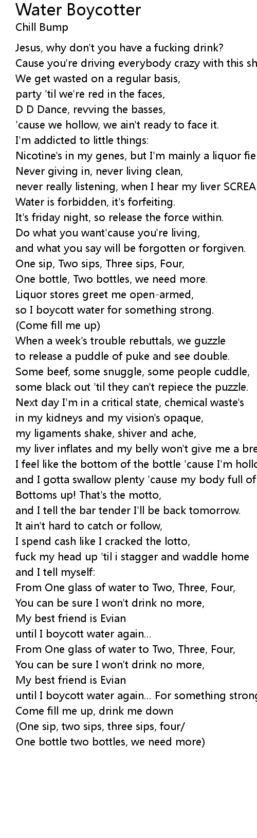 so I boycott water for something strong. |