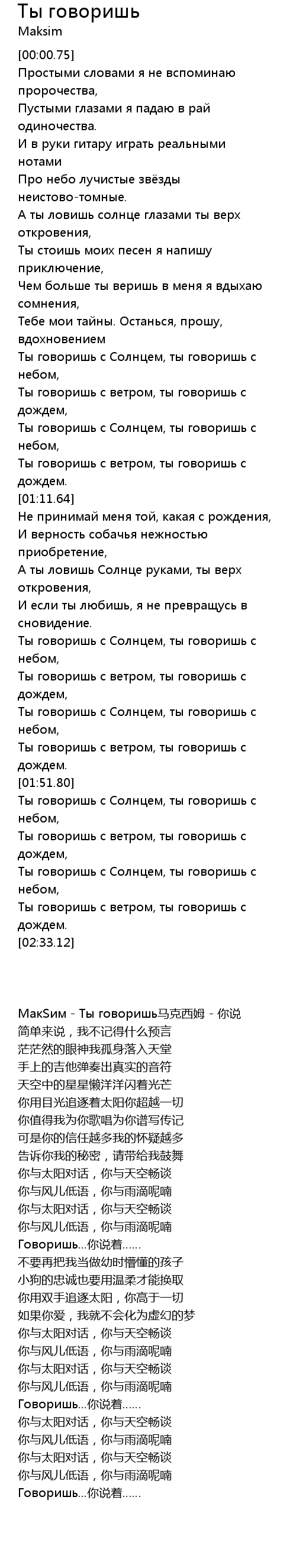 | [00:00.75] | МакSим - Ты говоришь马克西姆 - 你说 |