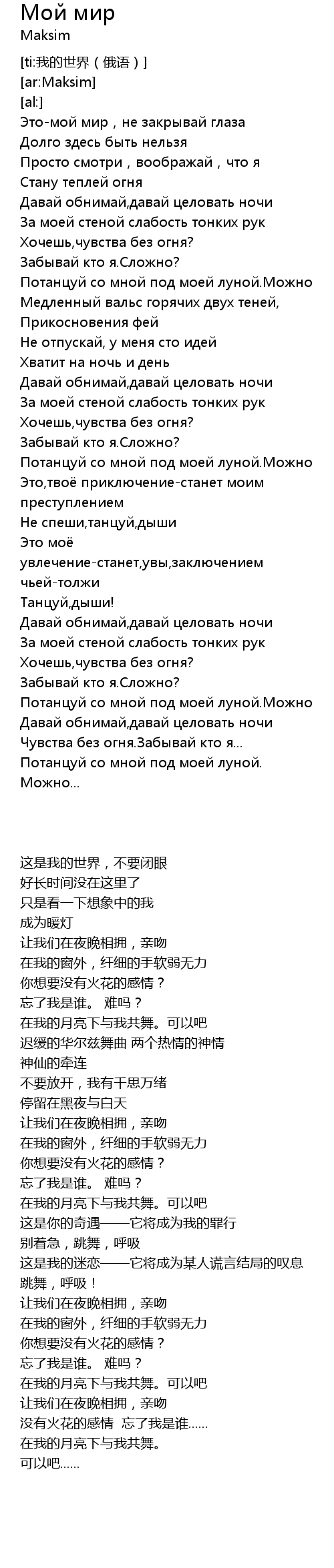 | [00:30.43] | Это-мой мир,не закрывай глаза |
