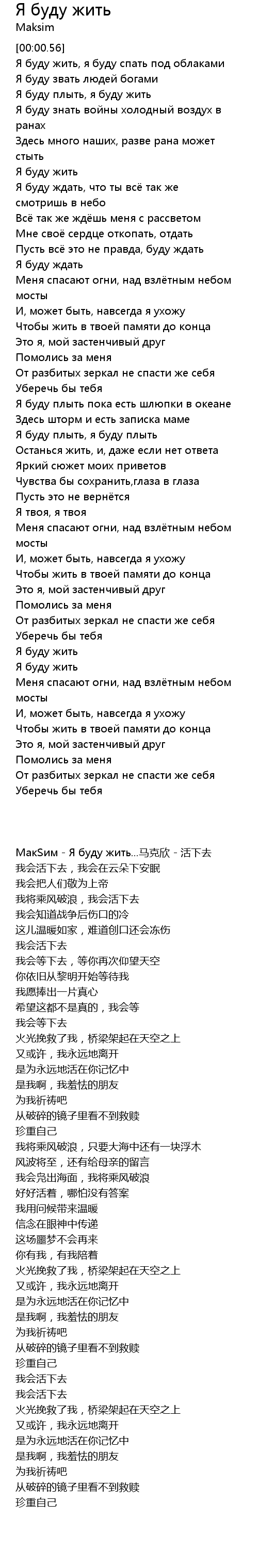 | [00:00.56] | МакSим - Я буду жить...马克欣 - 活下去 |