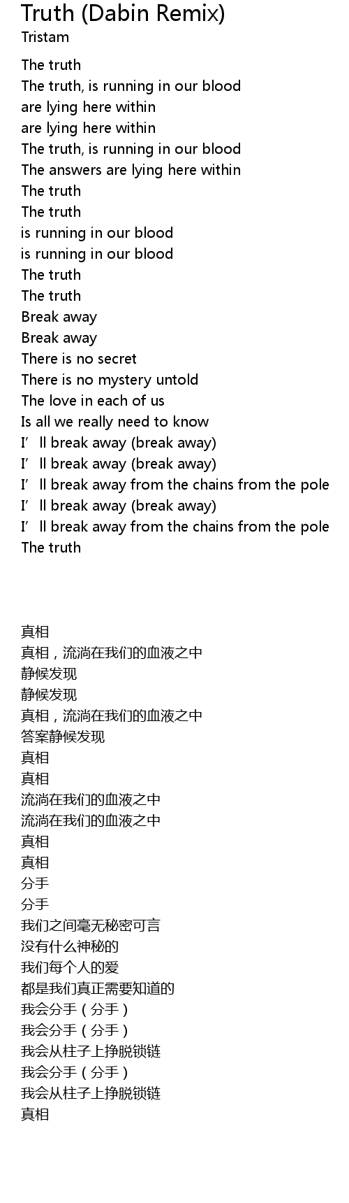 | [00:14.25] | 真相,流淌在我们的血液之中 |