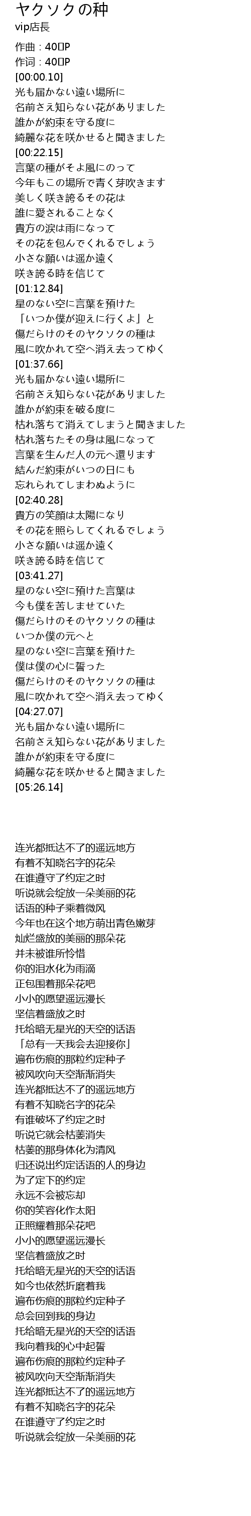 | [00:00.00] | 作曲:40㍍P |