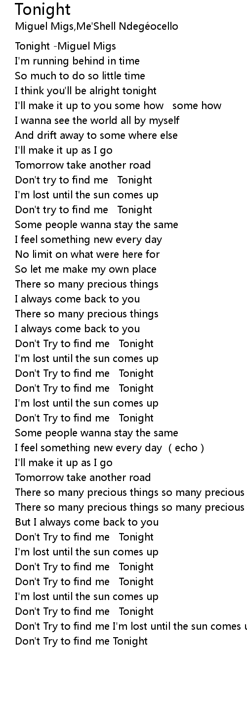 | [03:52.614] | Don' t Try to find me I' m lost until the sun comes up |