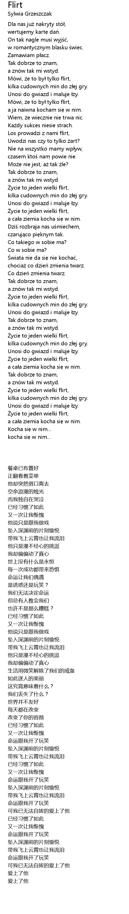 | [02:35.71] | Życie to jeden wielki flirt, |