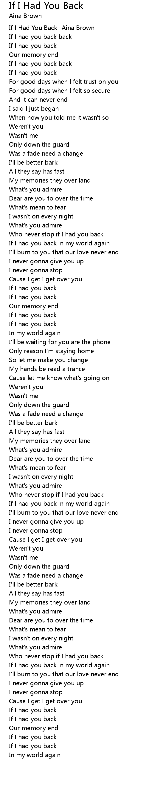 If I Had You Back -Aina Brown |