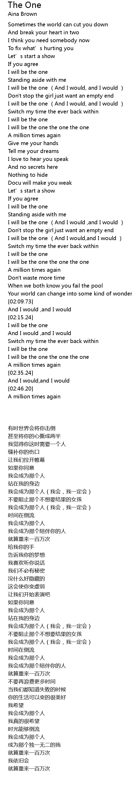 | [01:29.14] | I will be the one (And I would ,and I would ) |