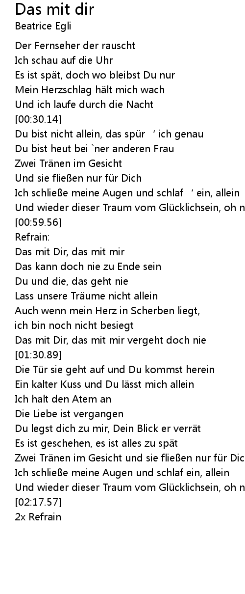 | [01:01.22] | Das mit Dir, das mit mir |