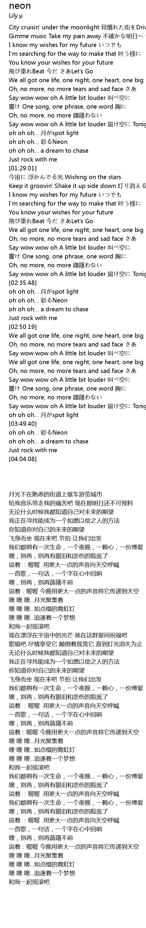 | [02:38.82] | oh oh oh… 彩るNeon |