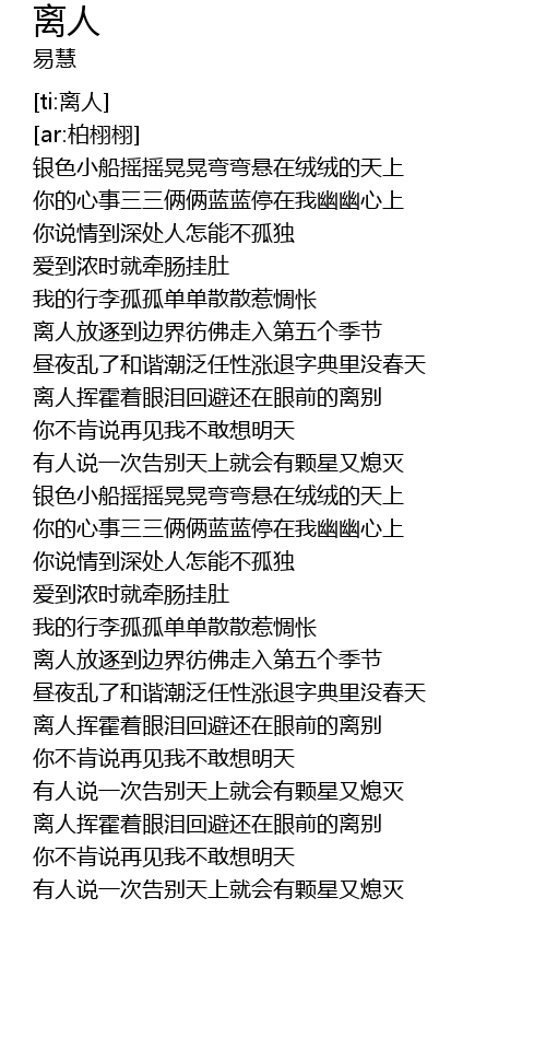 | [01:27.73] | 离人挥霍着眼泪回避还在眼前的离别 |