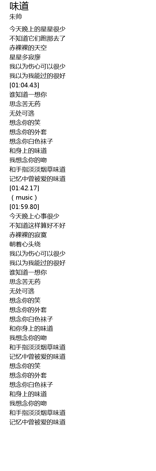 | [03:24.29] | 和手指淡淡烟草味道 |