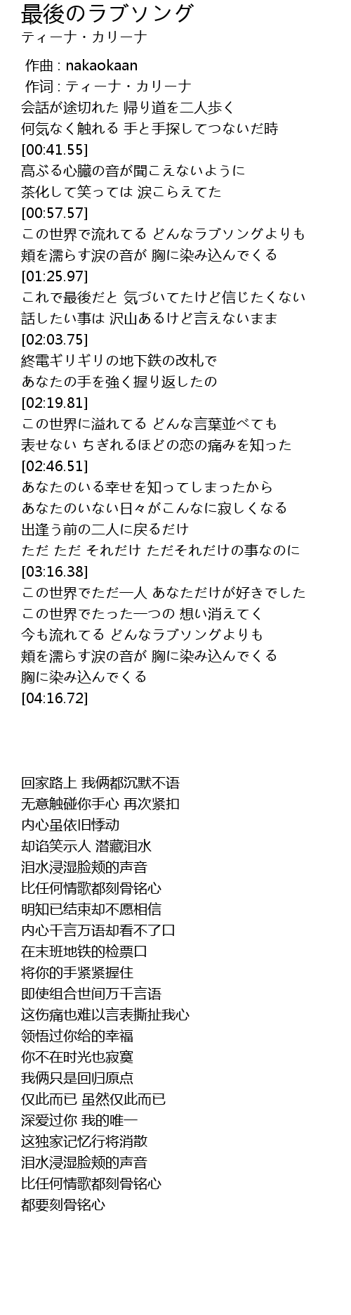 | [03:41.82] | 今も流れてる どんなラブソングよりも |