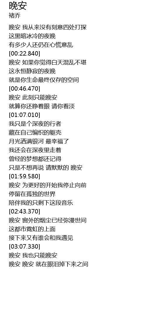| [03:09.440] | wǎn ān wǒ yě zhǐ néng wǎn ān |