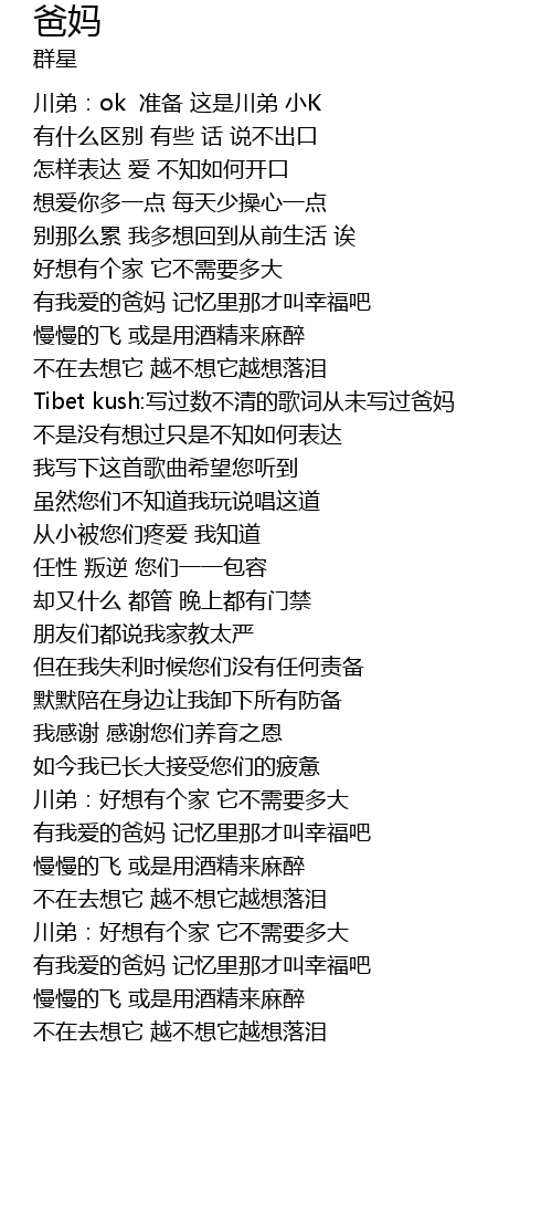 | [01:25.20] | Tibet kush:写过数不清的歌词从未写过爸妈 |
