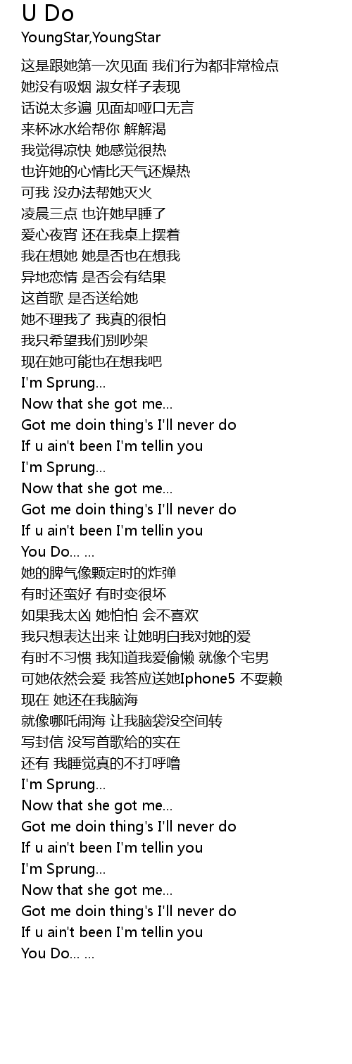 | [02:30.650] | Got me doin thing' s I' ll never do |
