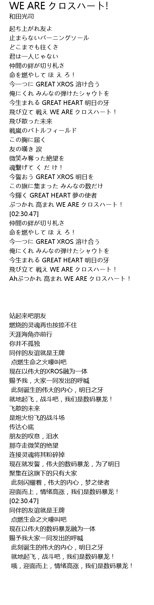 | [03:32.27] | Ahぶつかれ 高まれ WE ARE クロスハート! |