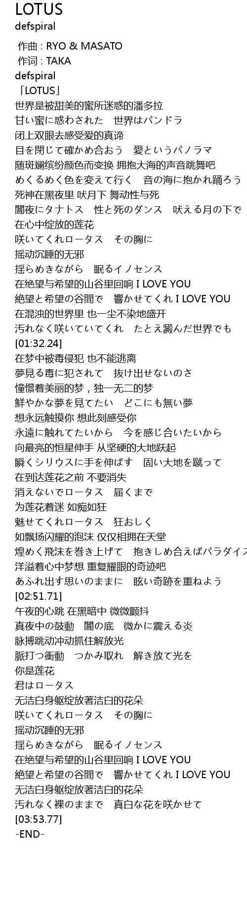 | [02:20.26] | 魅せてくれロータス 狂おしく |