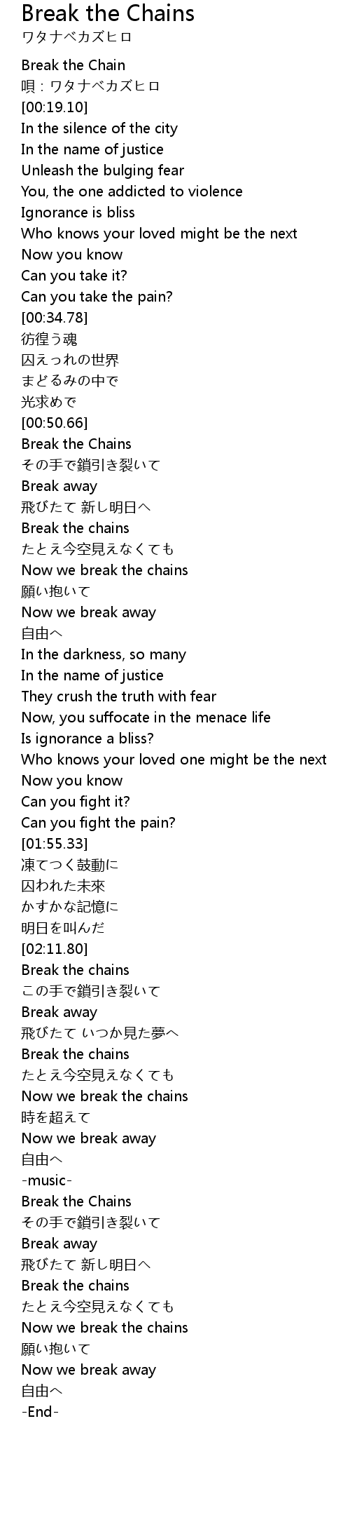 | [00:00.00] | Break the Chain |