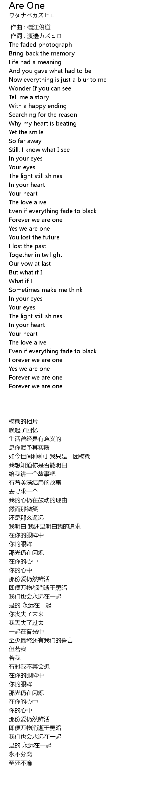 | 歌曲 | Are One |